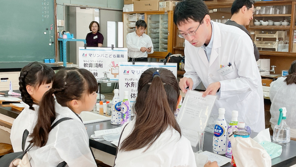 姶良市立重富小学校のバザーに出店し、「こども薬局体験」を開催しました!子どもたちに薬剤師の調剤業務を模擬的に体験していただくお仕事体験会です。